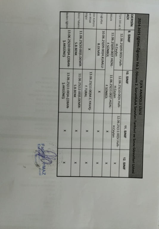 2024-2025 EĞİTİM ÖĞRETİM YILI 2.DÖNEM 2.SORUMLULUK SINAVLARI TARİHLERİ